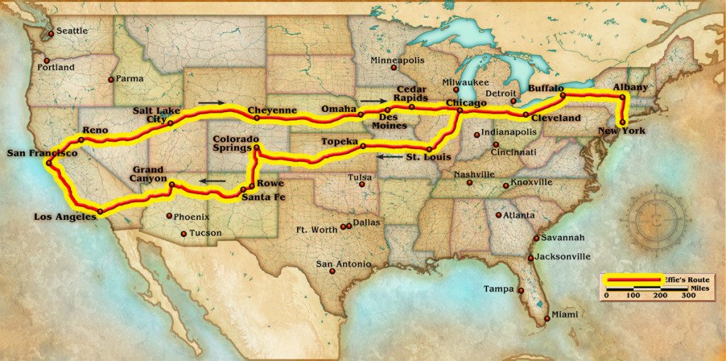 After touring the World’s Fair they cruised along Highway 1 to Los Angeles and then turned left and drove back to Brooklyn!