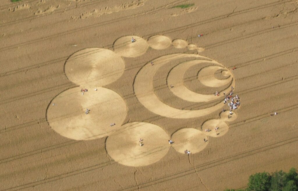There are other folks working on a big scale as well. Crop circles appear all over the world and some folks claim that they are made by aliens from other planets or dimensions. In 1991, two self-professed pranksters, Doug Bower and Dave Chorley, made headlines by claiming that it was they who started the phenomenon in 1978 with the use of simple tools consisting of a plank of wood, rope, and a baseball cap fitted with a length of wire to help them walk in straight lines.