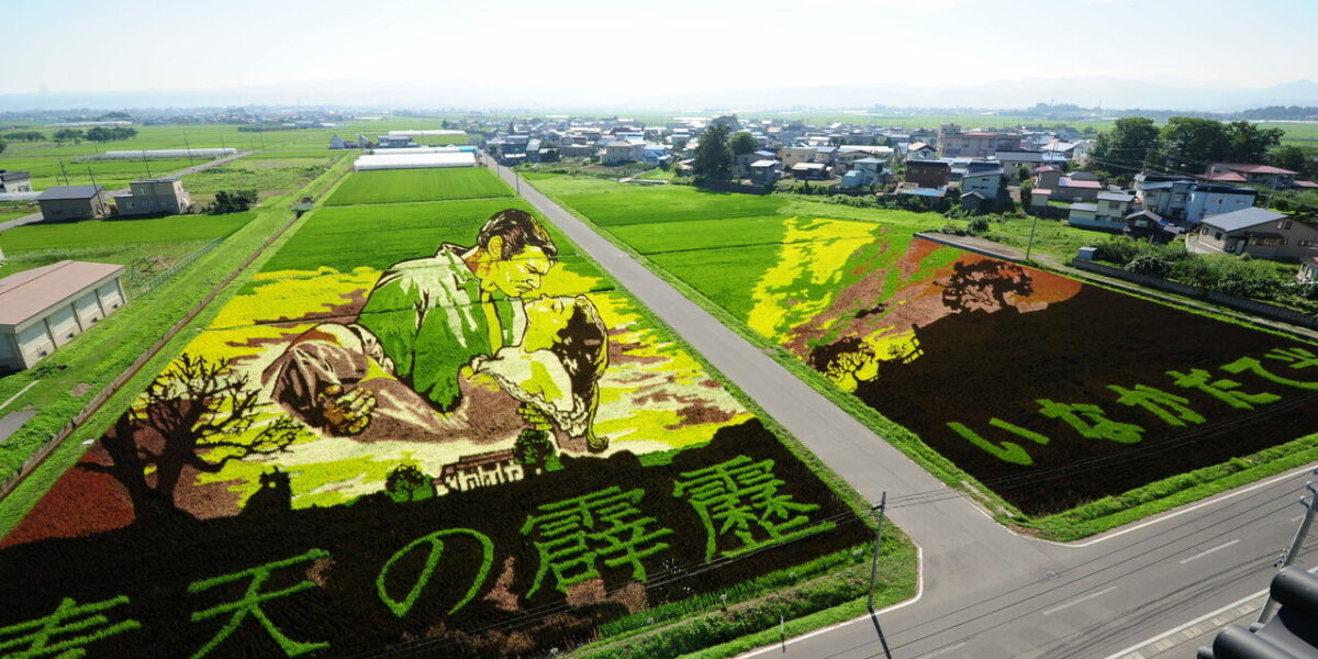 Back in the 1990s a school teacher named Atsushi Yamamoto hatched a plan to revitalize his town. He started with a simple rectangle of one color of rice set against another color. Today he has created a tourist destination visited by 340,000 folks in 2019.