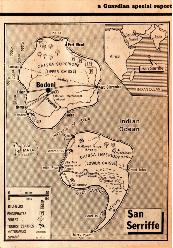 The Guardian was besieged with phone calls asking how to get to the islands and immediately a San Serriffe Liberation Front emerged objecting to the dictator. Texaco announced they would hold a Grand Prix on the islands and offered free tickets to someone lucky enough to answer a battery of tough racing questions.
