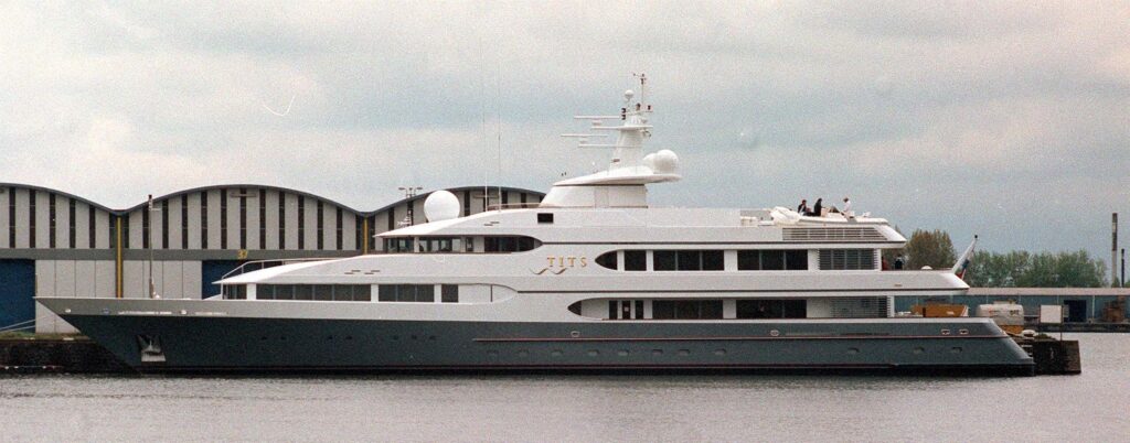 Maybe this means something different in the local Malay language, but since the shore launches are named Nipple 1 and Nipple 2, probably not. The yacht used to be pictured on the Brunei government website in front of the palace, but I see that’s gone now as conservative values continue to tighten in the country.